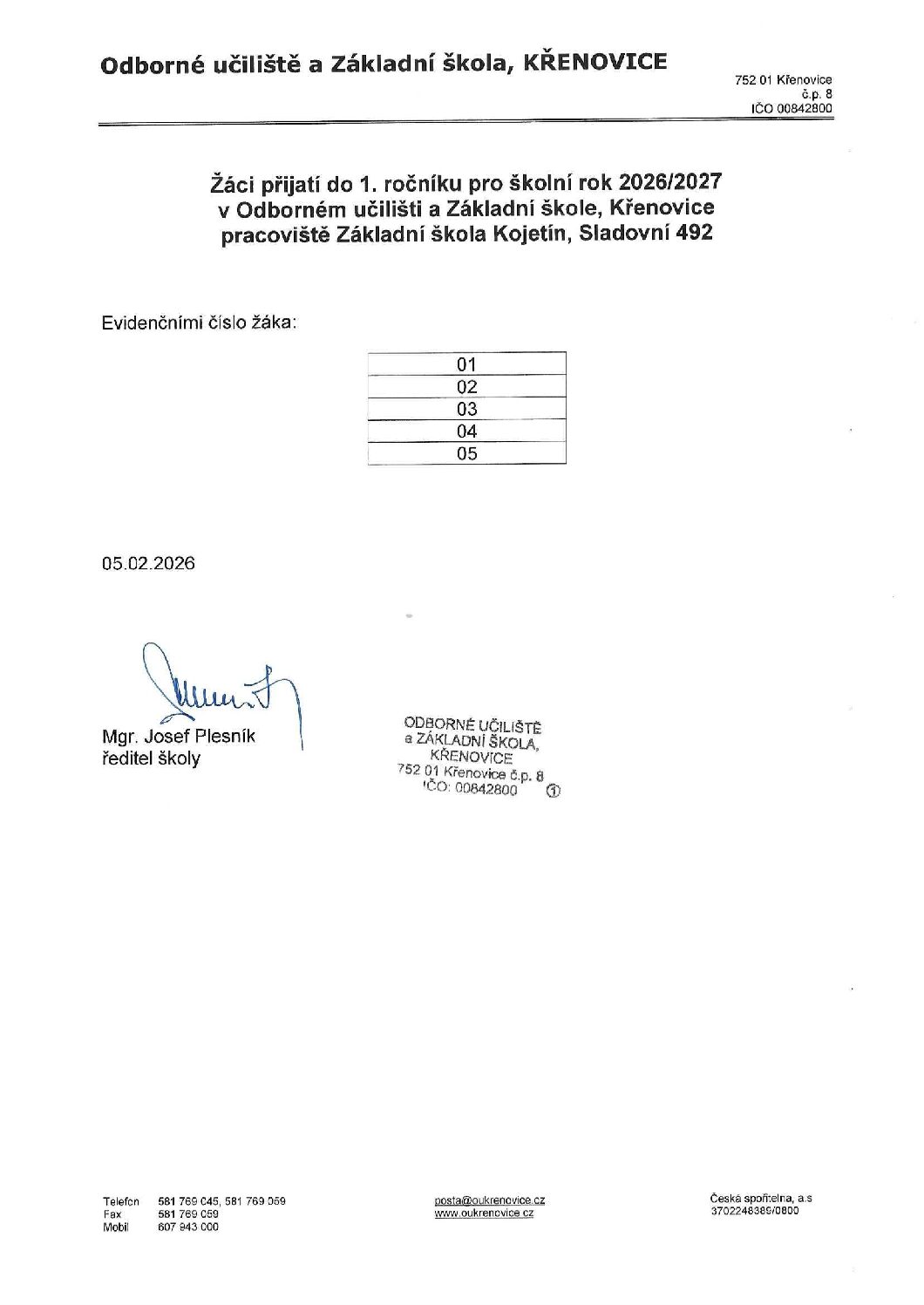 Termín: čtvrtek 5. února 2026 ve 13:00 hodin v budově Základní školy Kojetín, Sladovní 492